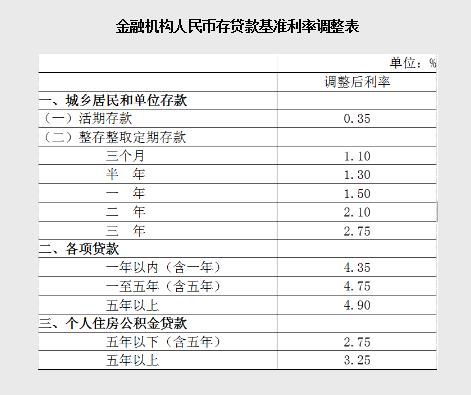 其中,金融机构一年期贷款基准利率下调0.25个百分点至4.35%;一年期存款基准利率下调0.25个百分点至1.5%。